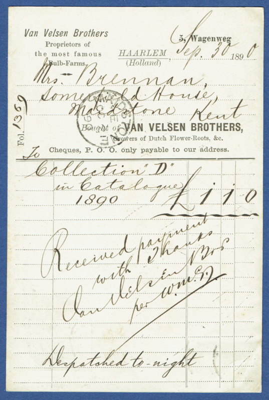 - Verzend datum: 1 october 1890.