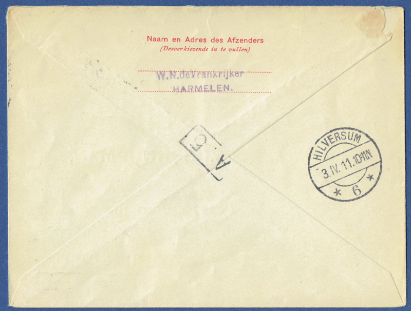 Particulier bedrukte cover HILVERSUM G14. Van HARMELEN naar HILVERSUM.