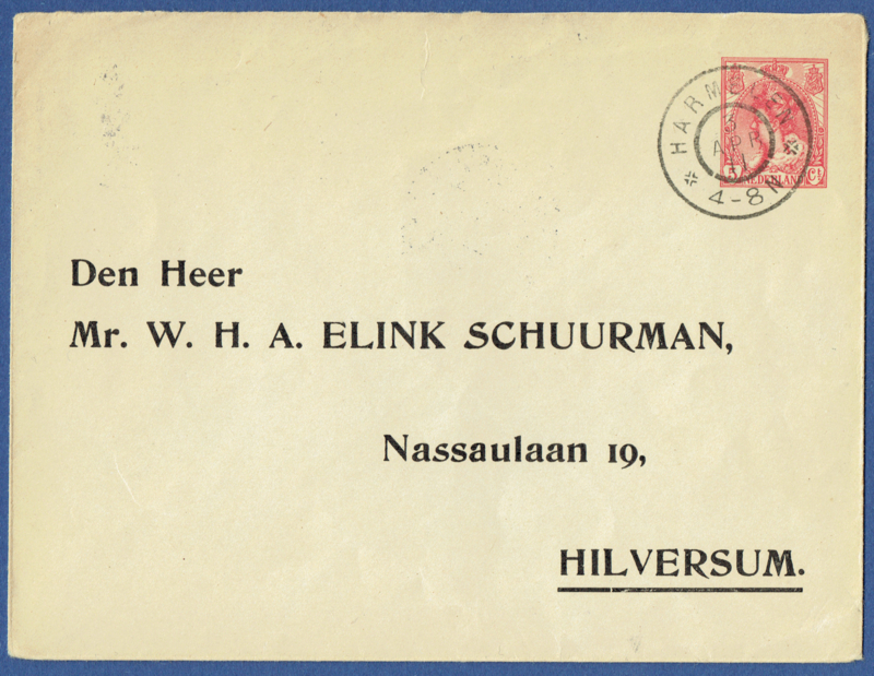 - Particulier bedrukt W. H. A. ELINK SCHUURMAN. (cover G14)