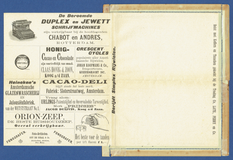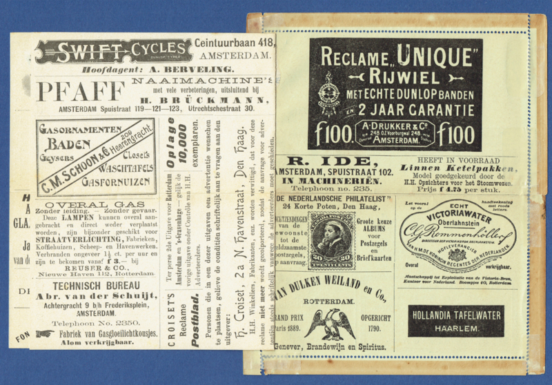 - Particulier postblad Croiset. RPB7. Ongebruikt met ingeplakte reclamebladen.