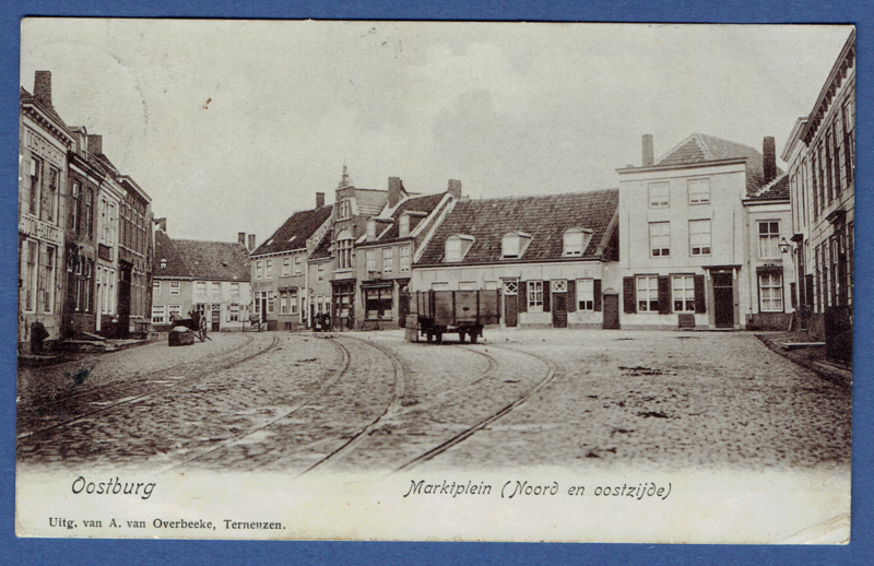 OOSTBURG, Marktplein (Noord en oostzijde). Gelopen fotokaart.∙ Vertrek: Oostburg.